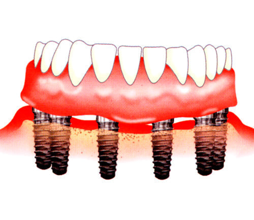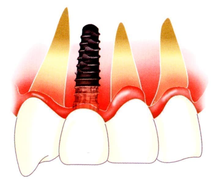インプラントとは、失ってしまった天然歯の替わりに、人工の歯根を顎の骨に埋め込み、その上に人工の歯を装着する治療法です。