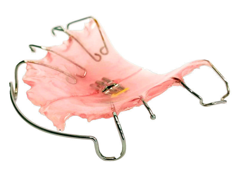 取り外し式の矯正装置です。顎の大きさを大きくしたり、上あごと下あごのズレを改善、開咬の改善などを目的に使用します。
